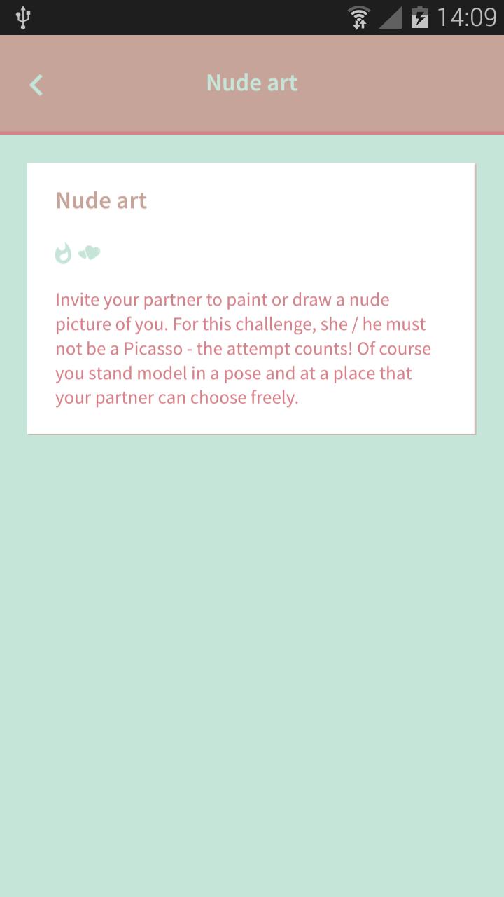 Dans les couples Lovespice, sélectionnez alternativement les défis originaux dans des catégories telles que la sortie, l'intimité, la romance, l'érotique et le fétiche. Pour la fin des défis, des points sont donnés, avec lesquels les défis peuvent être déverrouillés, qui nécessitent une intimité plus profonde.