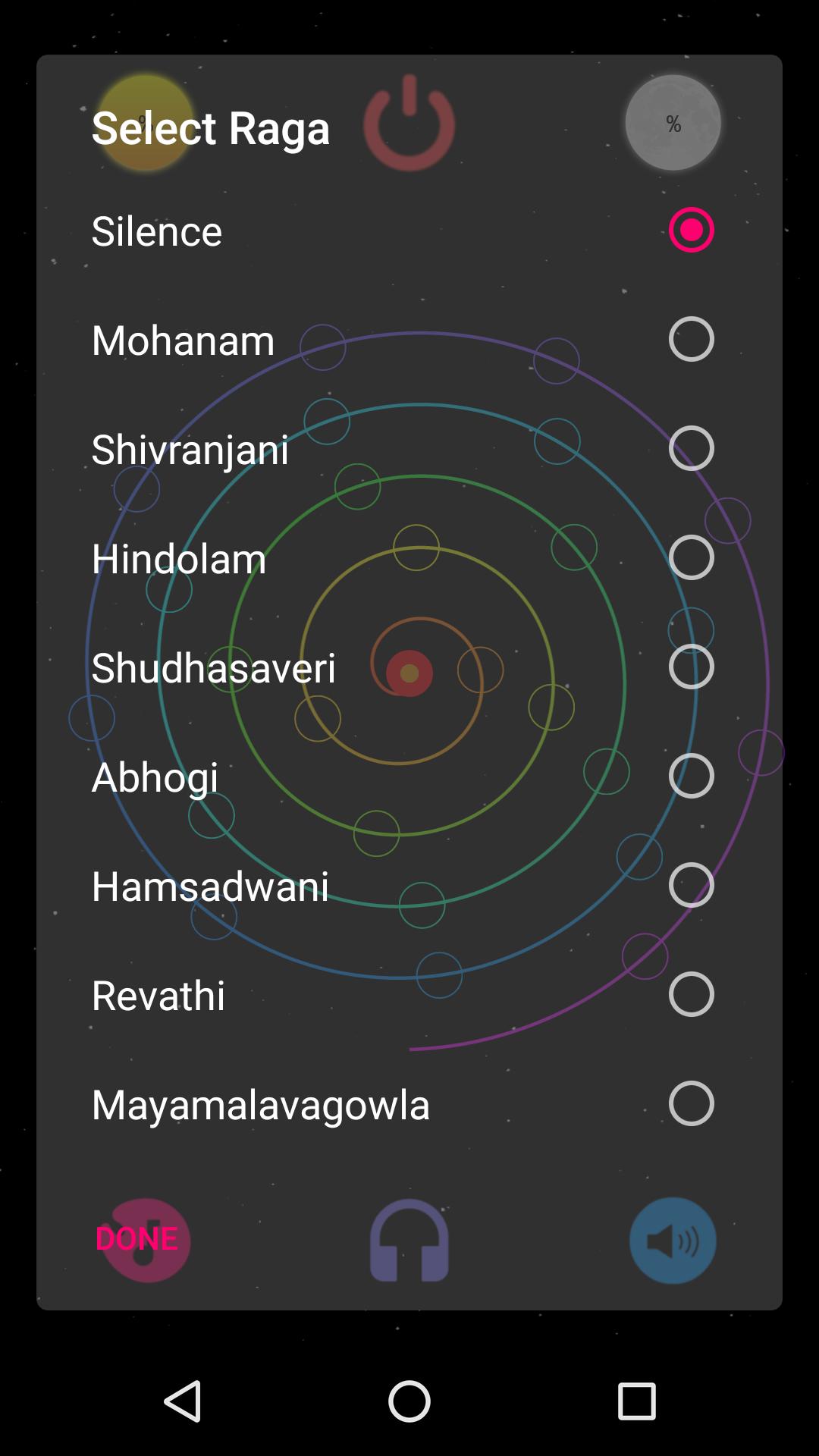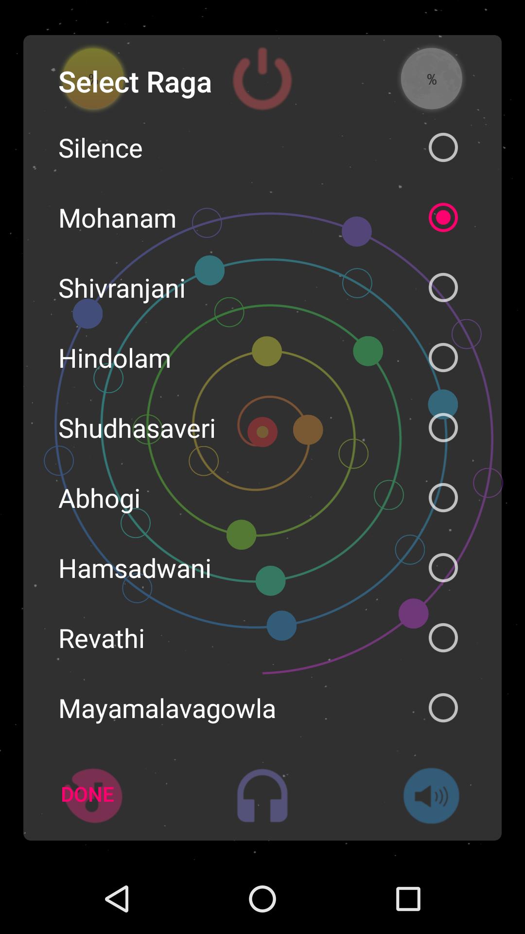 L'application utilise Muse - une technologie EEG portable d'Interaxon Inc. Le joueur porte le casque EEG et démarre l'application sur un téléphone ou une tablette Android qui parle du casque sur Bluetooth. Une fois connectés et allumés, des paramètres d'onde cérébrale spécifiques déterminent le reflux et le flux de musique dans la mélodie configurée. La mélodie peut être modifiée en sélectionnant dynamiquement des notes musicales spécifiques de l'octave à l'écran. L'instrument peut jouer quelques centaines de ragas en fonction de cette sélection. Tout en profitant de la musique dans le raga préféré du joueur, on peut également voir leur concentration et leur relaxation en regardant les scores. Lorsque la musique devient lente, cela signifie que l'état interne du joueur devient de plus en plus stable. Lorsque la musique est rapide, elle représente une pensée active ou un état d'esprit plus turbulent.