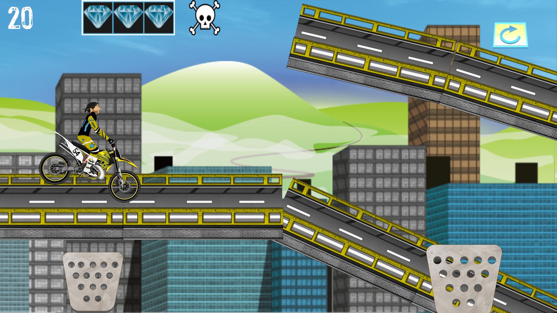 Un jeu basé sur la physique réaliste! Expérience des rebonds, des chutes et des sauts qui fournissent réaliste. Amusez-vous et regardez le réalisme des suspensions des motos.