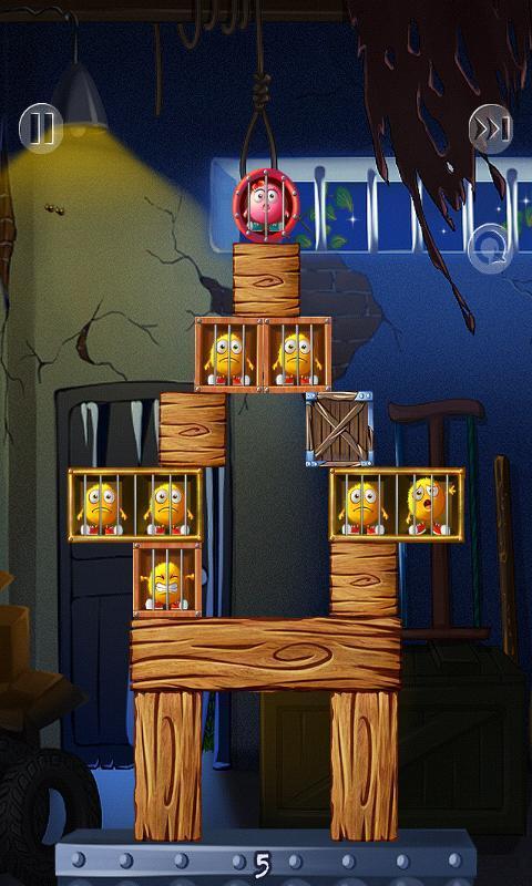 Les rondes sont en cage en cage, éliminant six types de blocs vides pour les sauver!