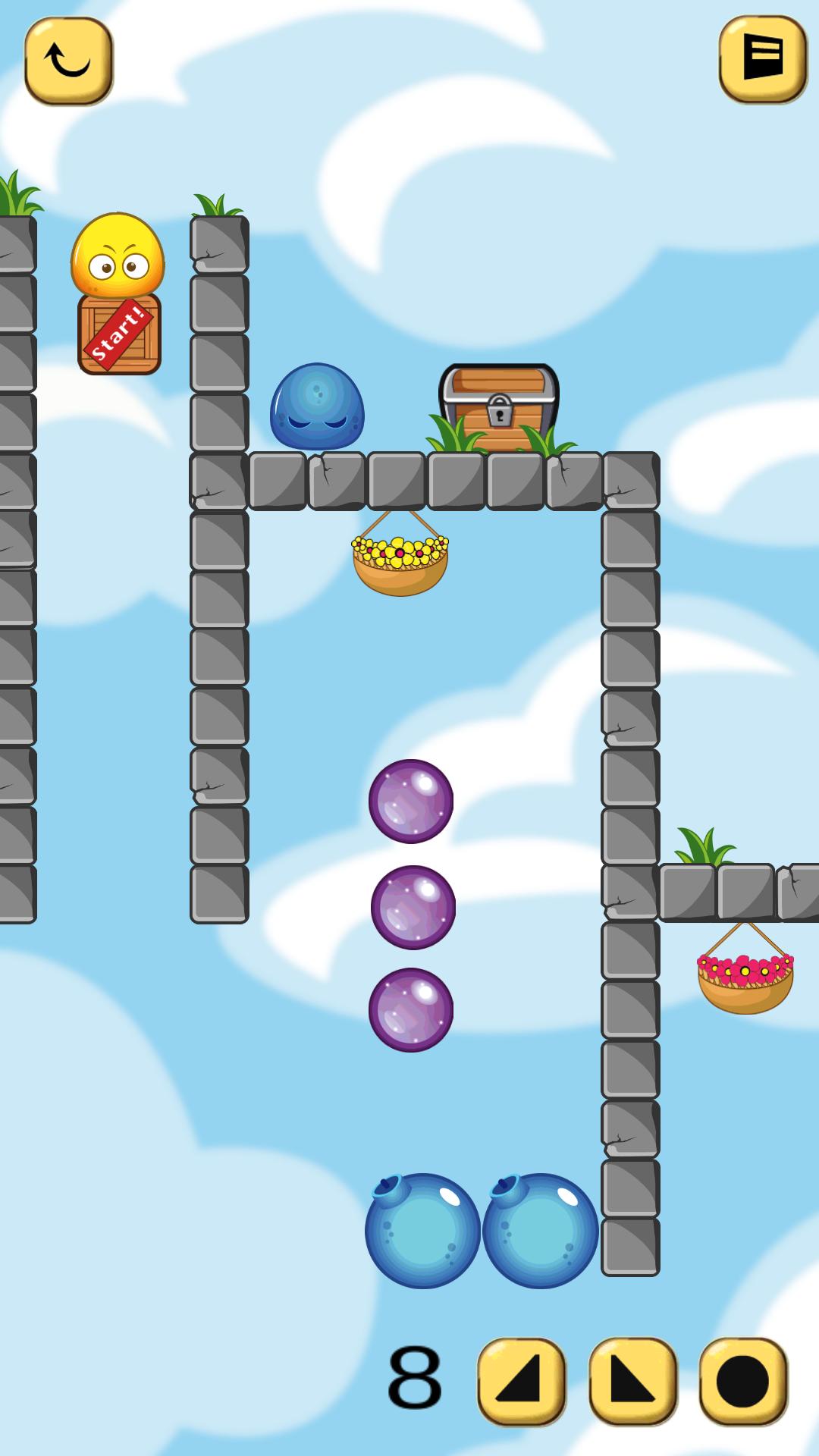 Aidez le videur à récupérer les boules violettes en plaçant des objets sur lesquels rebondir!