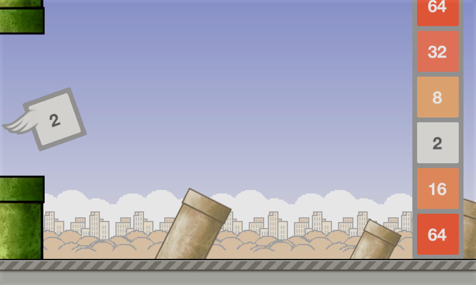 Two popular games fuse together into one maddening test of your skills. Half mathematical, half flappy, and totally insane. Can you stay focused and flap your way to 2048 and beyond? Good luck!