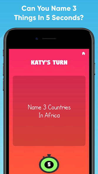 - With 5 seconds on the clock, a player has to name 3 things.