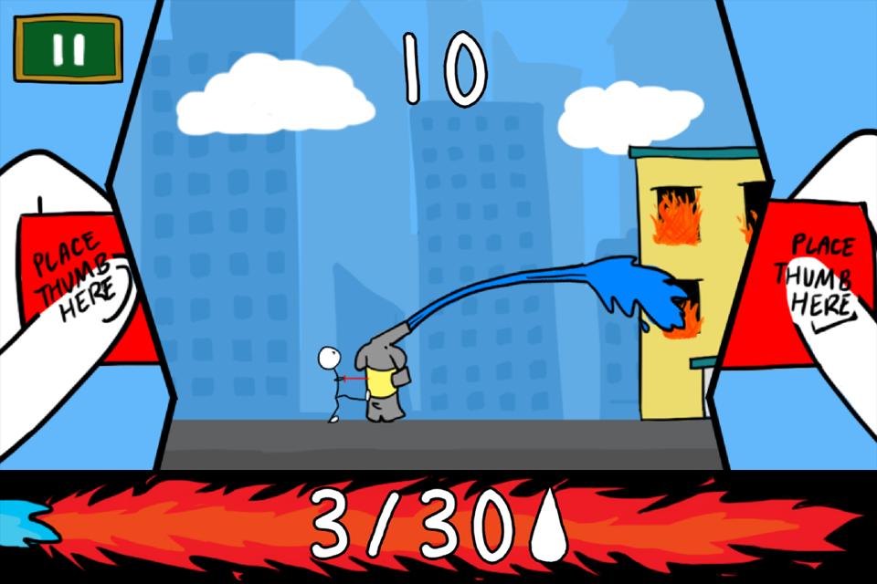 Oh no, there's a fire in the city! All the people escaped but the building's burning down! Who's going to save us? Wait, look over there! It's a fire hydrant...it's an elephant...it's Walter Macine the water machine! But he needs someone to use the handle to pump the water...will you help us? Use Walter to put out the fire!