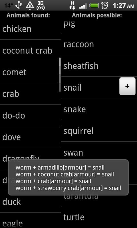 Displays only animals that you can currently make. Find those elusive combinations and join the 525 club!