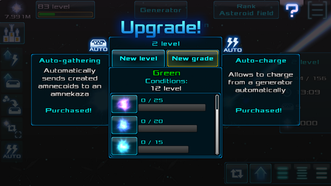 This exciting game will let you expand your own space business. You will become a part of the great Amneka and will help it generate matter and energy for the universe. The space needs your help. Create planets, stars and entire galaxies!
