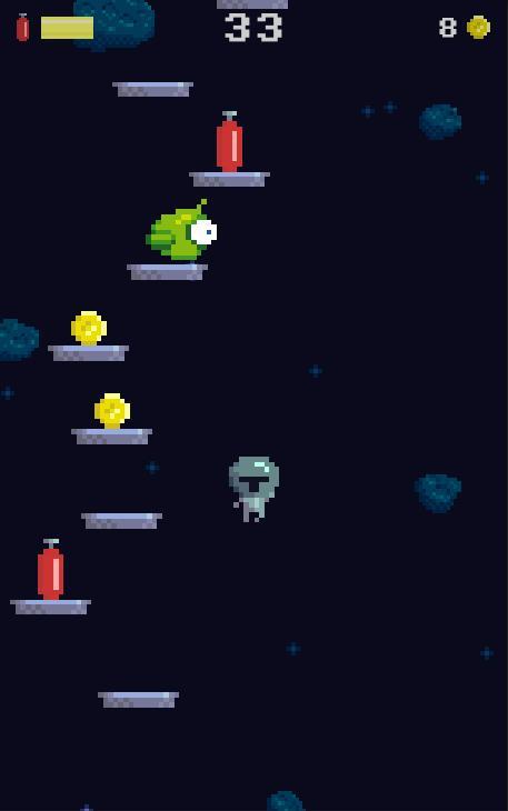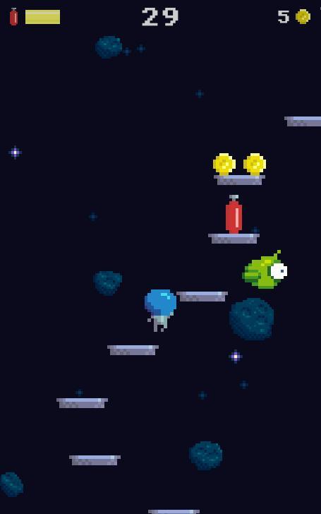 Command Babynaut in this engaging astro adventure. Escape the alien planet jumping from platform to platform, and help yourself with boosters to reach the highest score. Don't run out of oxygen!