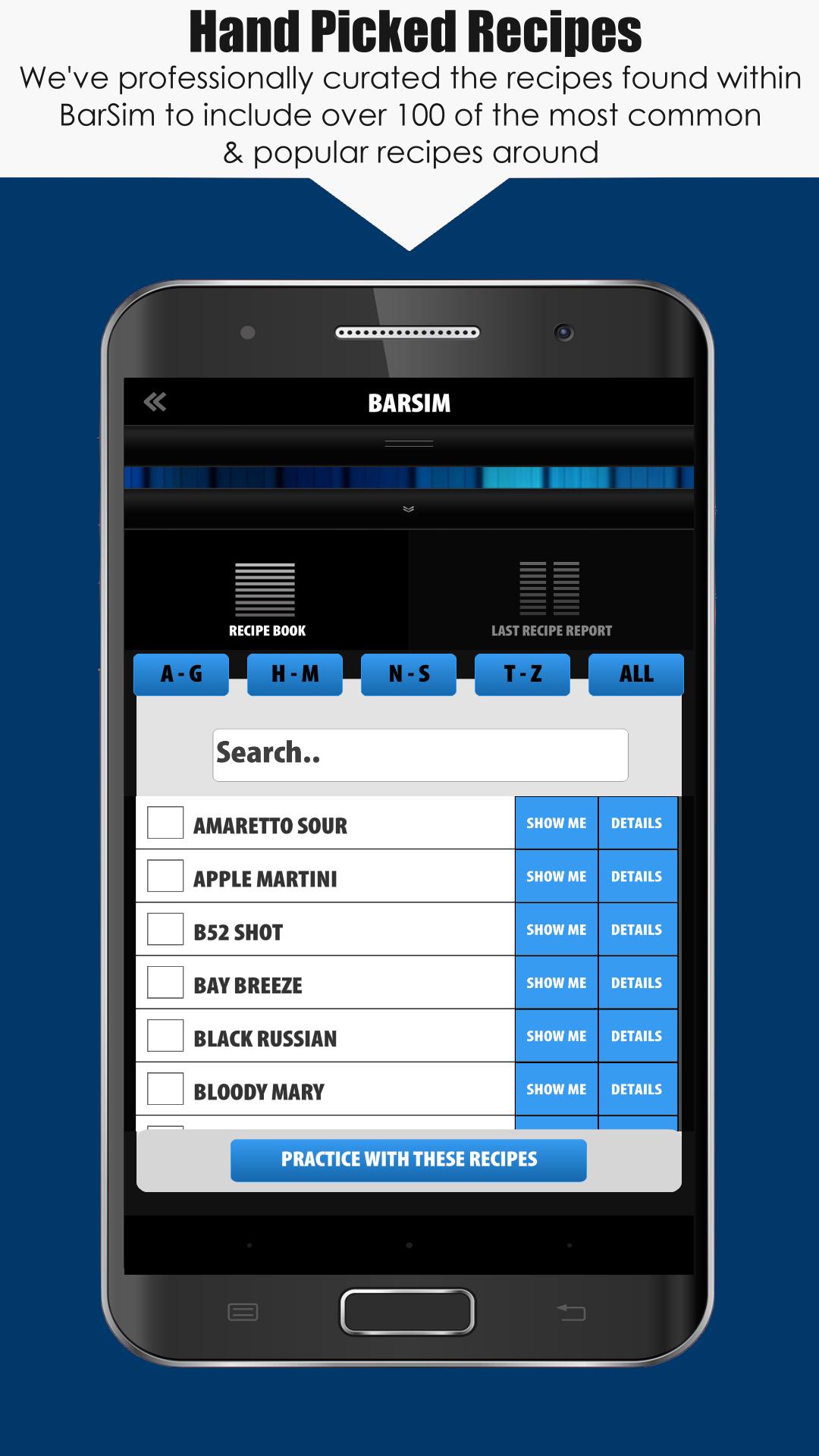 BarSim™ is the culmination of over 15 years of Bartending, Bartender Training & Bar Themed Gaming experience. Three years in the making, we've worked tirelessly to ensure that every step in the drink making process has been simulated in our Bartending App. In fact, we're certain that once you've mastered the BarSim™ Bartending Simulator, you can easily take the same skills to the real world. It doesn't matter if you've never poured a drink in your life, or you're already a veteran bartender, this game will challenge your skills and be a whole lot of fun.