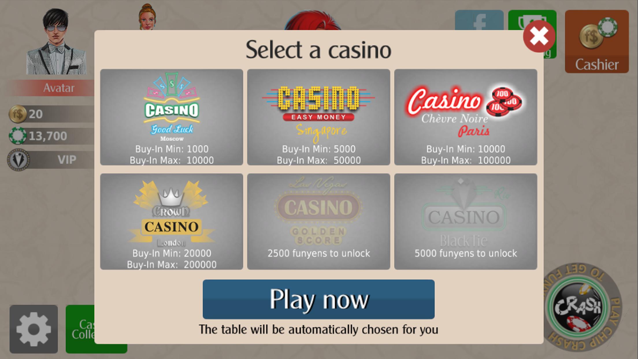 You can play casually in 6 different casinos, which will guarantee fun for everyone, from beginners to experts.