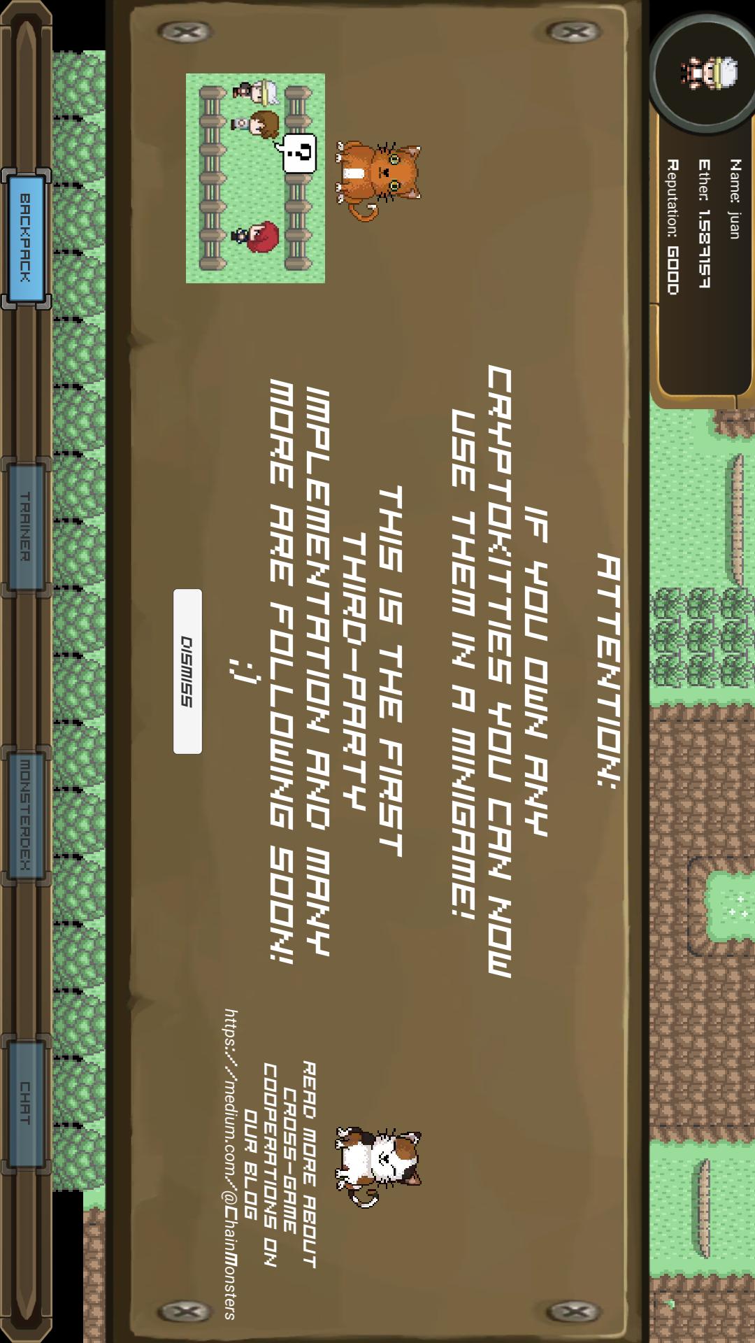 This project is 100% powered by blockchain. Every action you take, every ChainMonster you catch will be reflected in the game and on blockchain itself.