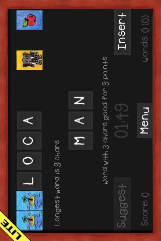 - using Lite Version you won't have any time bonus when a correct word is inserted (so a single game will last 60 seconds max) and the game will stop if you reach 250 points or if you'll add more than 10 words