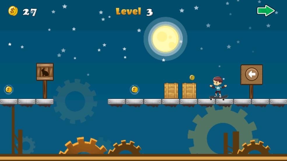 Kid skater is a skateboard game so you need to control the boy to collect coins and and escape from enemies.