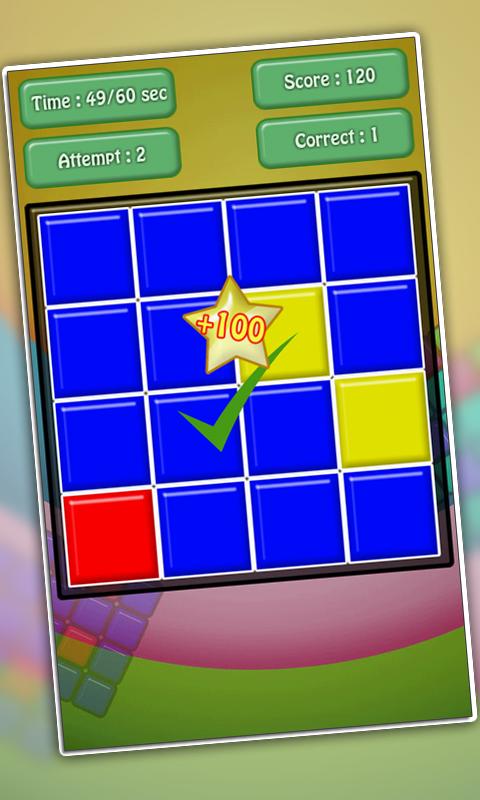 if you click on blinked cell,you will get +10 points.This is a Tile and memory game to build the power and