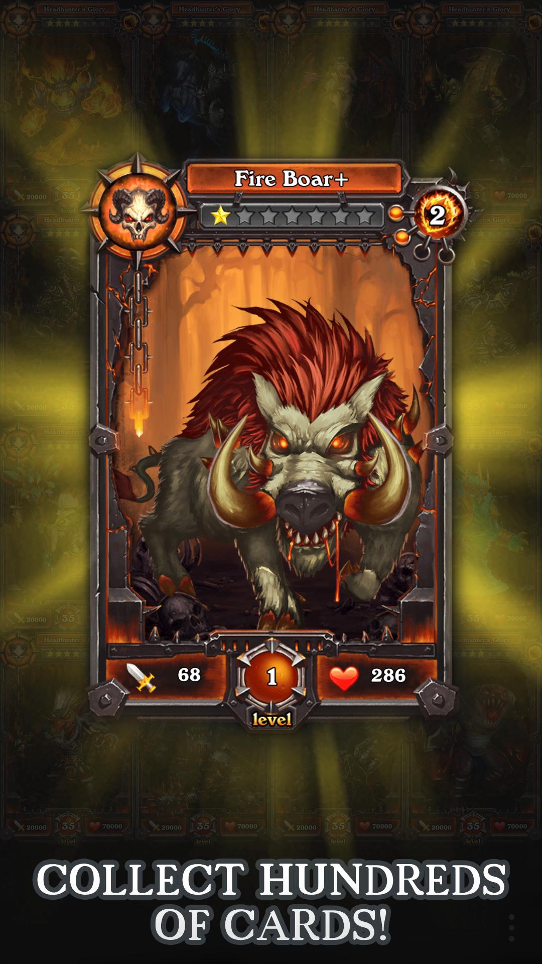 Build a legendary roster of heroes and monsters, upgrade their skills, and charge into epic battles for loot, honor, and glory! With your army of monster cards, you'll crush fierce skeleton warriors, goblins, and other mythical beasts of ancient Drespyre and Galya. The epic storyline will take you across 5 massive campaign maps that span from the mountains of Galya to the shadowlands of Drespyre, where you'll encounter many different heroes that require your help to push back the encroaching demon forces. Equip your monster and hero cards with weapons or armors to give your team a massive advantage in the PVP Arena. Collect special loot with special abilities to give you the necessary edge for maximum pwnage in PVP.