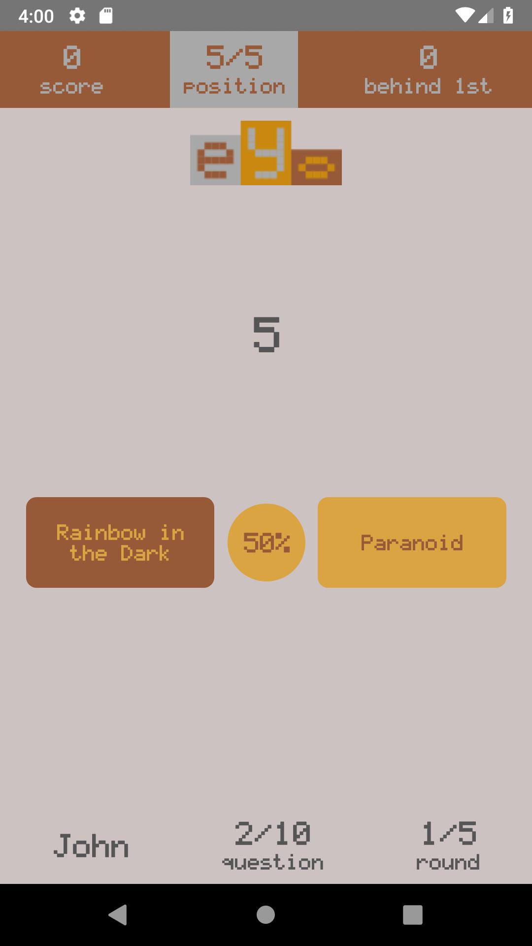Interactive music quick quiz