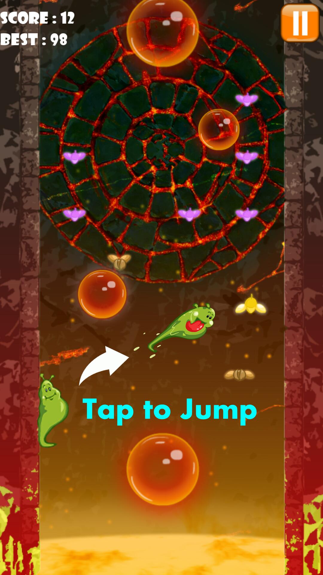 Help Blob catch flies by tapping the screen, which will allow him to jump from one side to another. Save him when he is sliding down the walls, because Blob has no control. Collect as many flies as you can in this fun and addictive one touch game, because Blob is very hungry. This task might sound simple and easy, but beware Greedy Monster is a very challenging, tough to beat game, which is nonetheless very addictive. Still, there are a few powerups available to help you and Blob along.