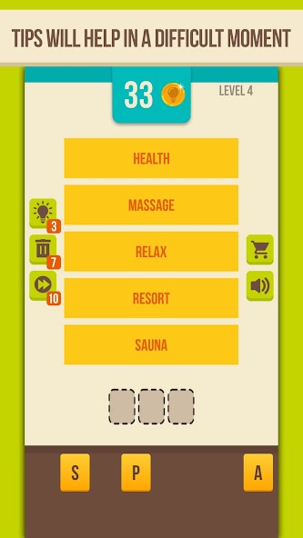 The association word game provides you with a fun way to flex your brain. Guess the word by 5 associations by opening them one after another. The fewer associations you open, the more coins you will earn, since every unopened association is a coin to be added to your purse. There are three tips that will help you in difficult situations.