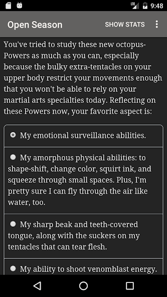 "The Hero Project: Open Season" is a 170,000-word interactive novel, and the final installment of Zachary Sergi's "Hero Project" series. It's entirely text-based--without graphics or sound effects--and fueled by the vast, unstoppable power of your imagination.
