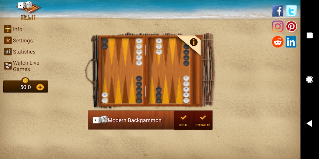 Play backgammon against your Facebook friends or through the bluetooth device