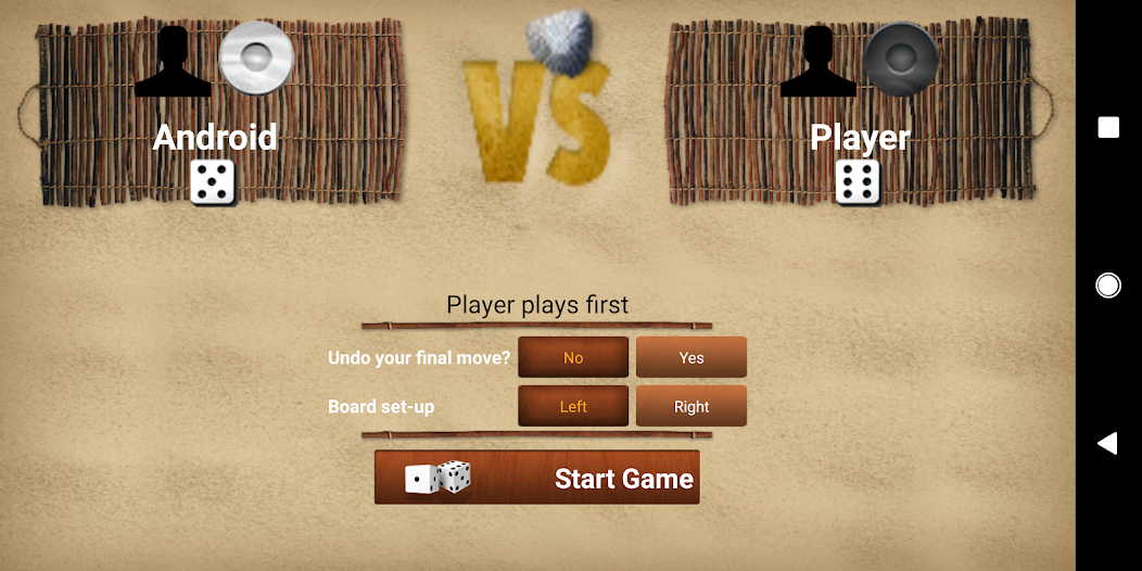 Play against your friend or the computer (3 levels of difficulty) 15 backgammon like games: