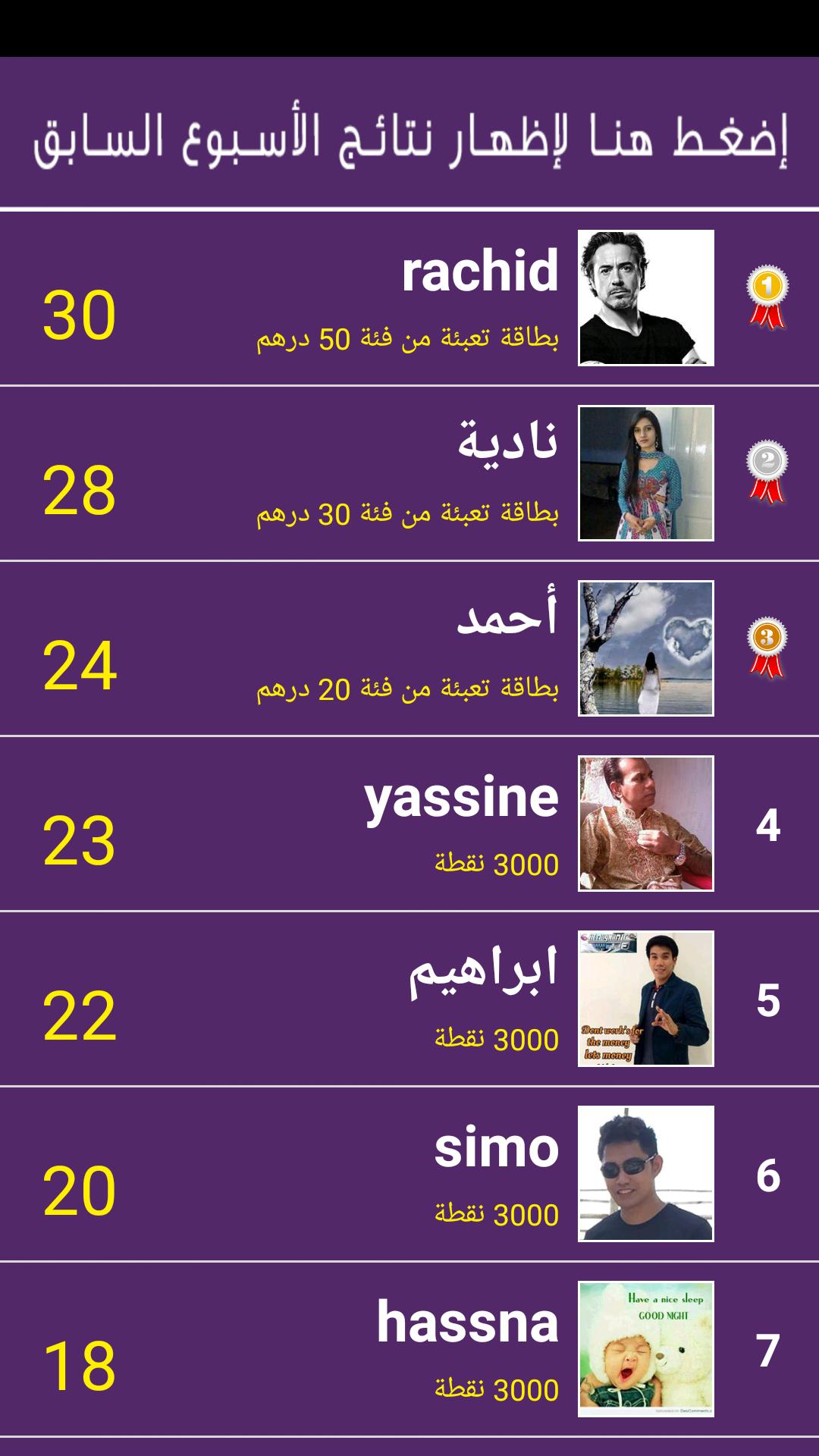 Jibha the first Moroccan game that offers you real awards, just download the game, play and challenge other players in the weekly competition, if you won the first place you will get a recharge card for 50 Dirhams and an additional 3000 points so you can play again the next week, as for the second place you will get a recharge card for 30 Dirhams plus 3000 points and finally for the third place get a recharge card for 20 Dirhams plus 3000 points, in case you won you will get your recharge card on your telephone provider (Maroc Telecom, Meditel or Inwi).