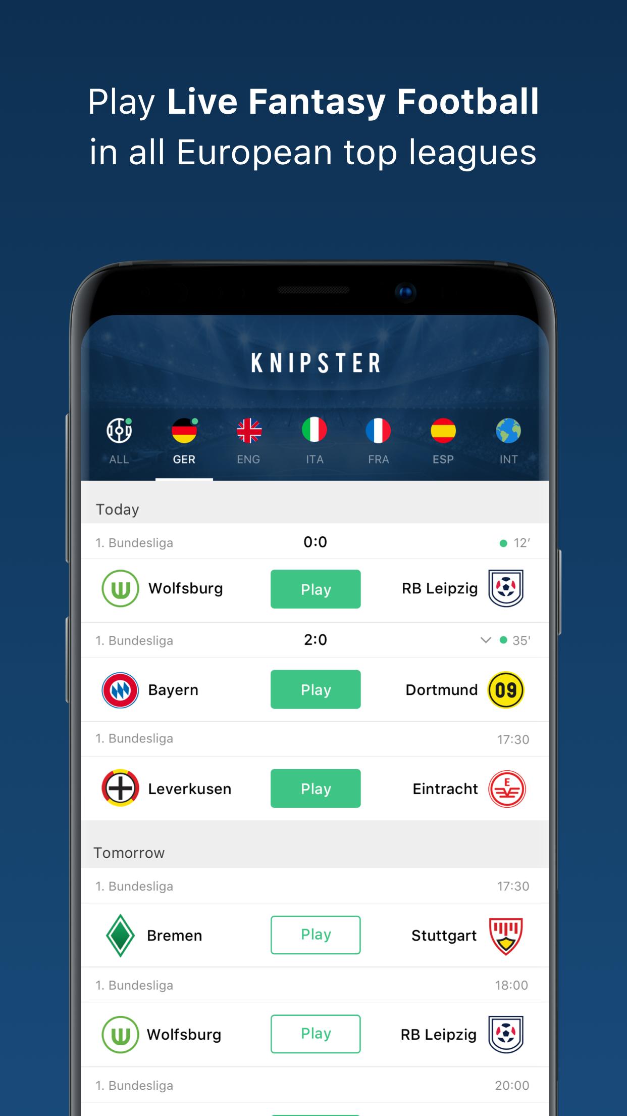 Knipster is a Live Fantasy Football application where you can compete with your friends, colleagues and other football fans. Create a group, invite your friends and set up tournaments with the top matches of Europe's biggest leagues!