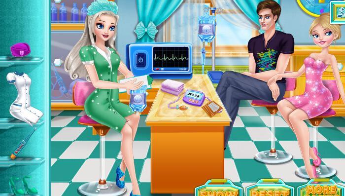 There are two patients waiting for me to help them .You can choose the boy or the girl .If you choose the girl .You should give her a intravenous .You should disinfect her hand first and prepare all of tools and healing drugs you need,according to the hints .I think it is easy for you to finish theses steps .