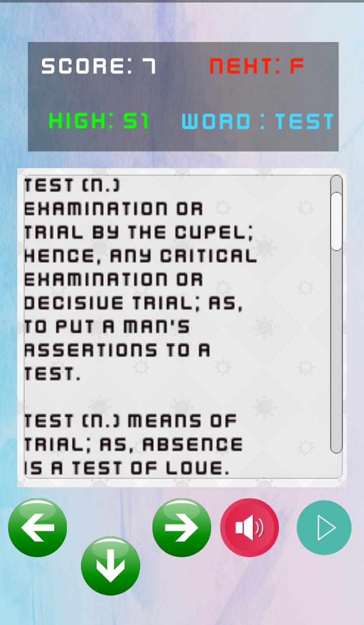Expand your vocabulary, improve your spelling, check the meaning of the word and train your brain with this addictive word game!