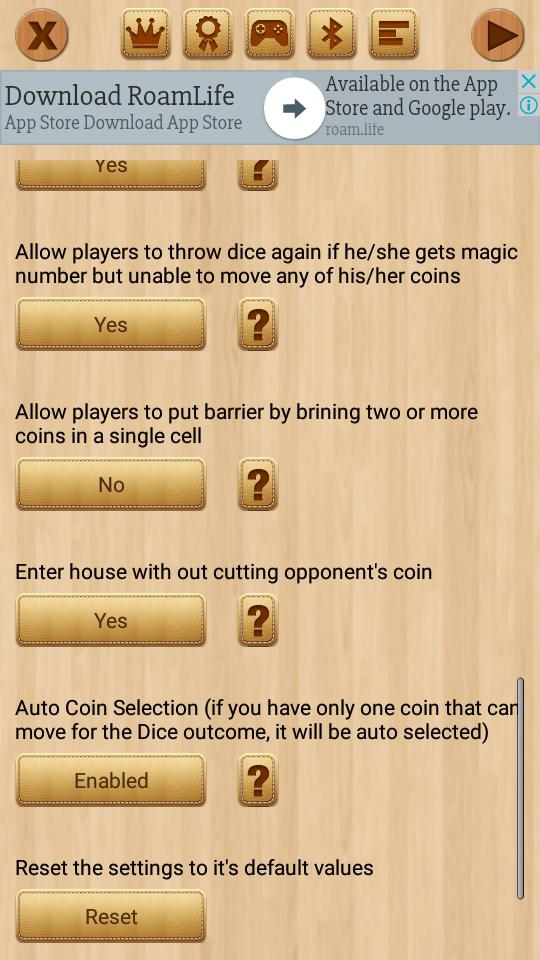 The game has very extensive settings to suit your own set of rules for the game, these settings are very simple to set.