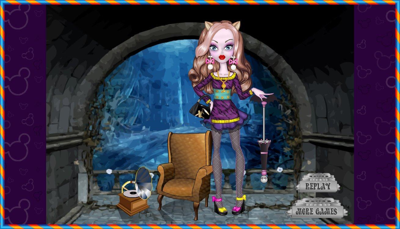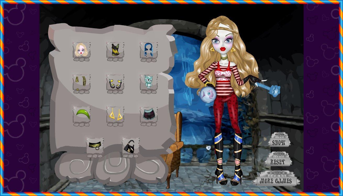 This cute little monster needs some fashion advice if she wants to look gorgeous tonight. In Monster Girl Dolls Dress Up & Makeover you can give her a completely new look that will surely stun the other students at Monster Girl. First pick out one of these cute brown highlighted hair styles. Then apply her eye shadow, blush and lipstick. You can even pick out her eye color. Now it’s time to select her outfit from any variety of top, bottom or dress. After you give her some shoes you can add some accessories, like earrings, a necklace or a handbag. Now she can show off her new look.