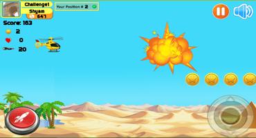 In the first mission- "Battle of Desert" you have to save your Helicopters from incoming monsters, mummies and skull monsters. At the same time collect coins to trade it for new life and missiles later on. You will have missiles to shoot monsters and in between some extra lives+missiles which will help you score high.