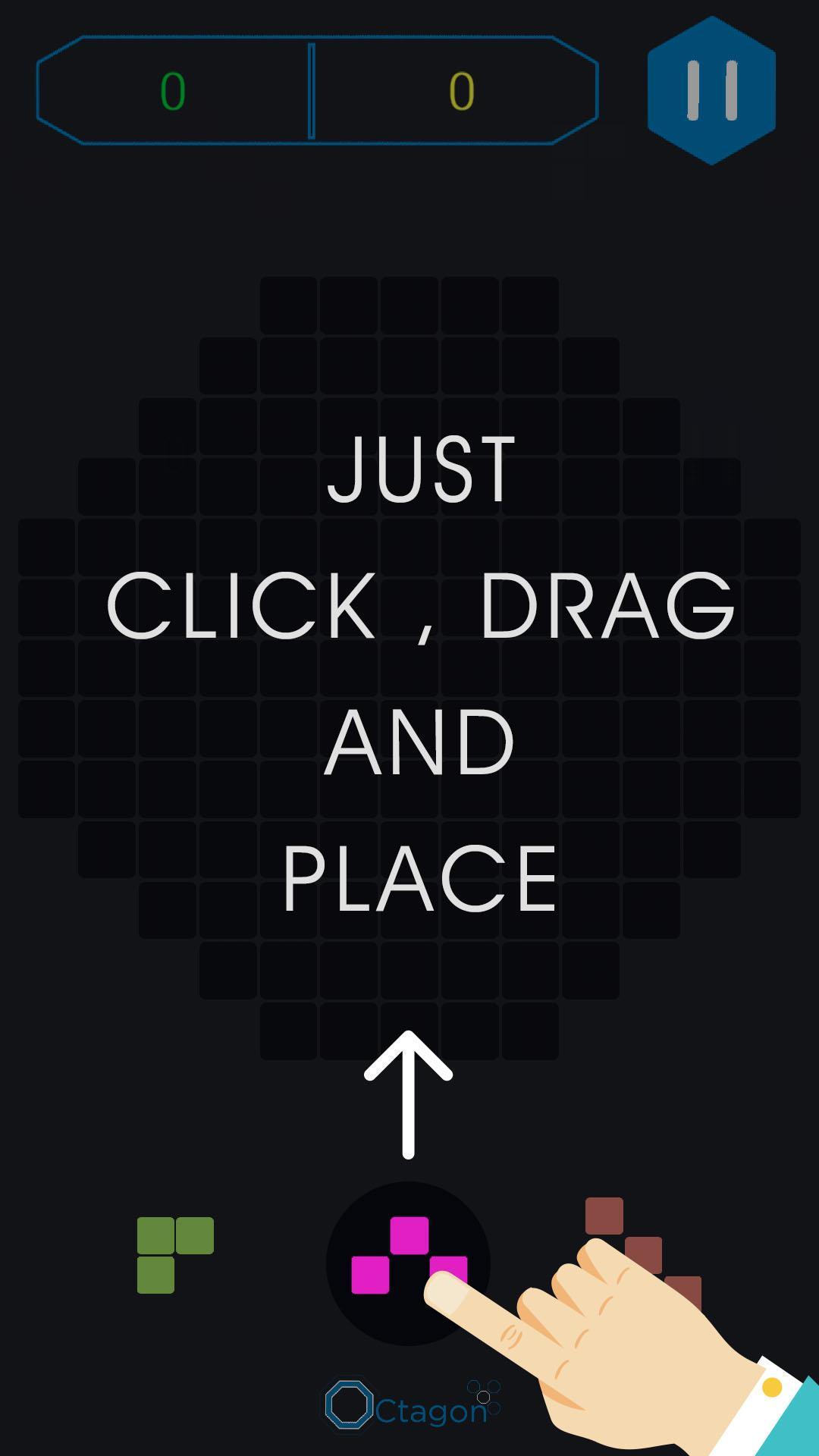 - Pick blocks from bottom and drag it into the grid. Now release block wisely in such a manner that it'll make a complete vertical, horizontal or diagonal line.