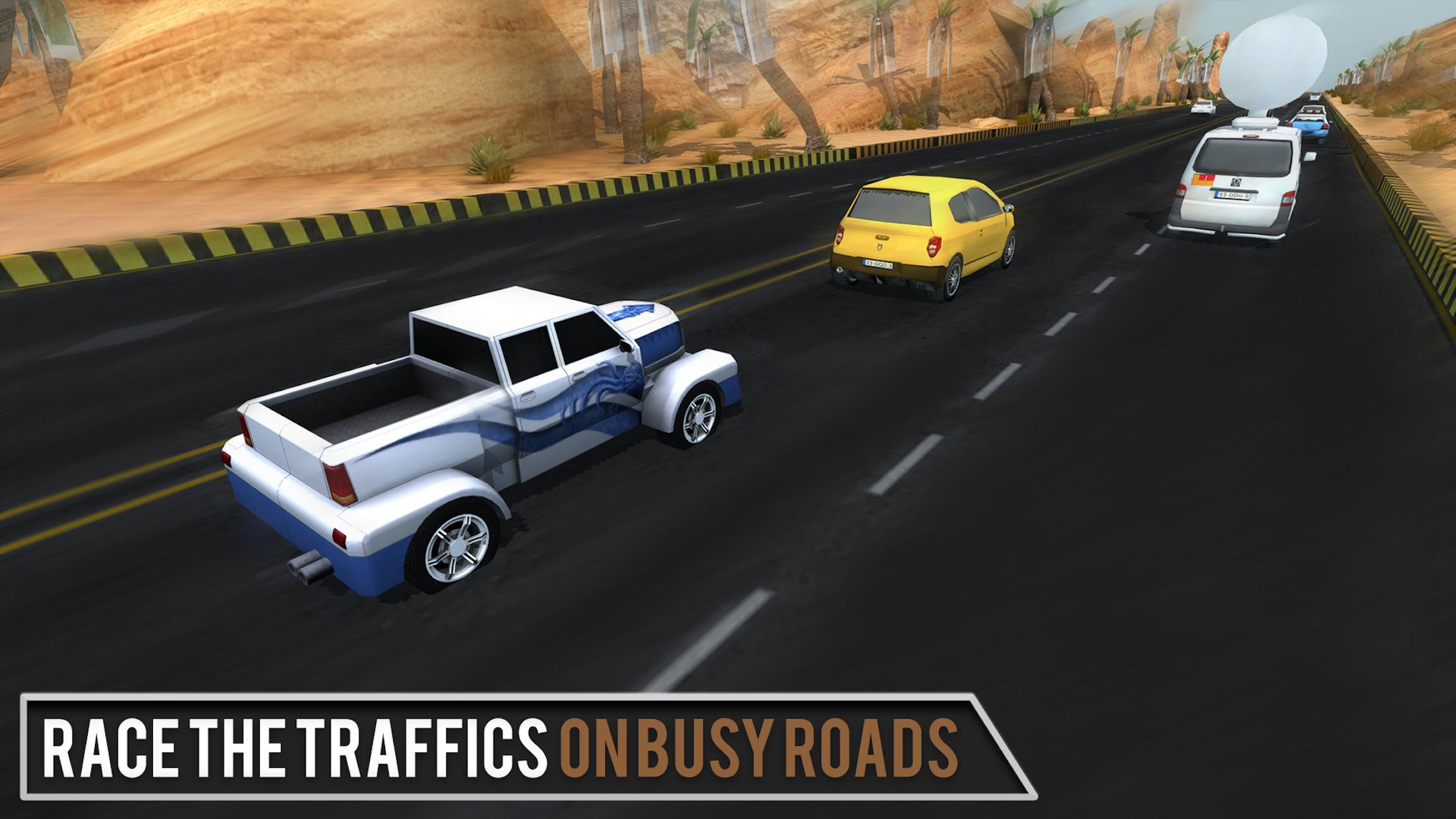 Drive your car through streets packed with real life traffic and thematic cars. Avoid fire trucks, blazing cars, cement trucks, busses, vans and even police road blocks! Play the extreme super fun Offroad Traffic racing game on google play.