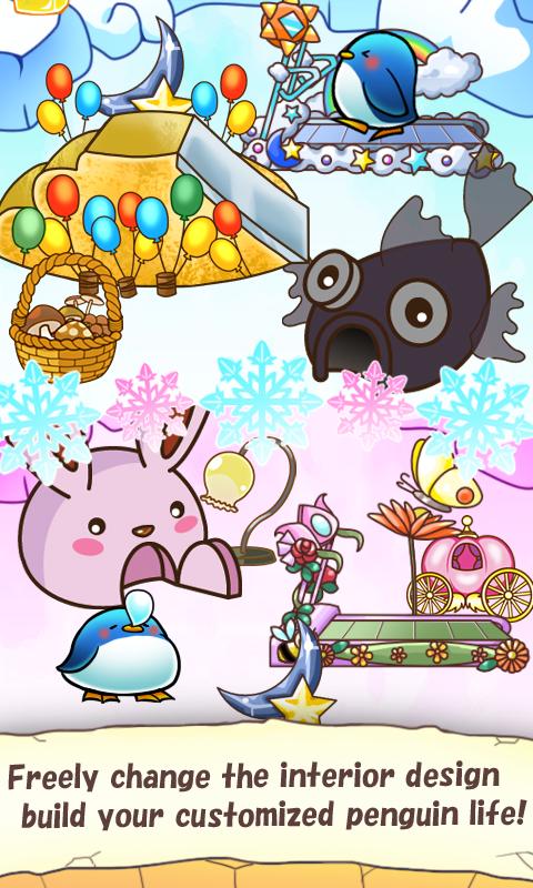 ・Press the Penguin longly and you could move the Penguin.You also can change your furniture or decoration.
