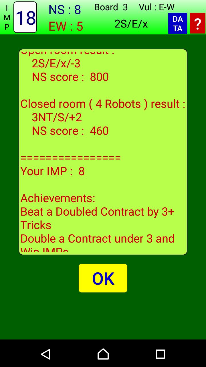 NOTICE that this App is designed just for fun, and thus the robots are leveled only between “intermediate” and “beginner”. Therefore, if you are a serious and advanced bridge player, I gently suggest you not to download this App ^_^