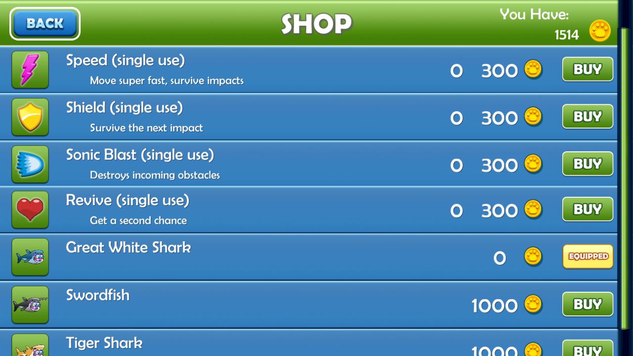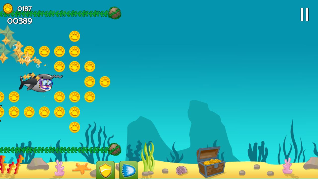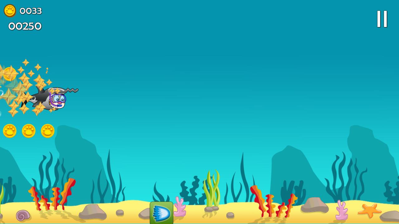 Can you help Tiger disguised in a shark suit, collect as many coins as possible to get upgrades, and enjoy his discovery dive holiday? Collect coins and avoid dangerous jelly fish and real sharks as Tiger explores the depths, Collect a heart for additional lives, if he's in trouble, press the heart to continue. Too tough? go to the store and spend your coins, get a suit upgrade and other power ups.