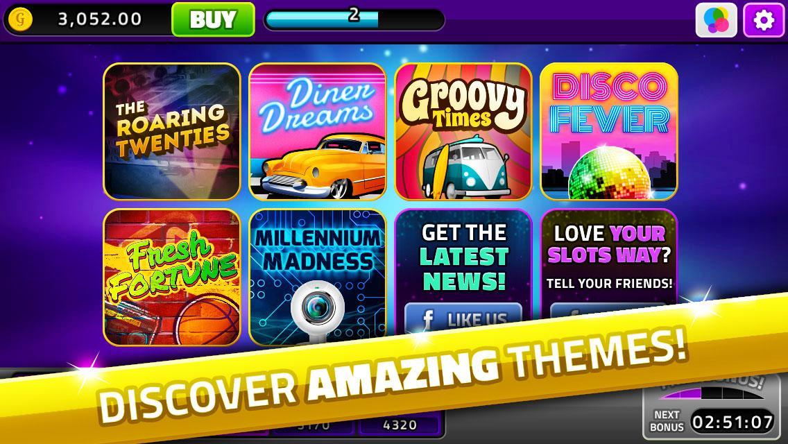 In Your Slots Way trip you will WIN BIG, enjoy great bonuses, mini games, free spins and other countless opportunities to win free coins! You will party in the 20’s, make peace in the 60’s, dance in the 80’s and much more.