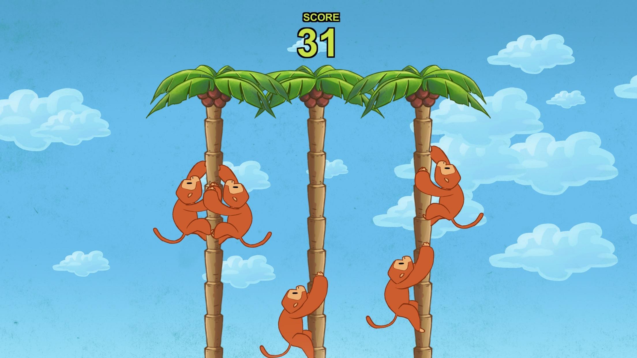 - Cukup ketuk pohon untuk menjatuhkan kelapa dan tekan monyet