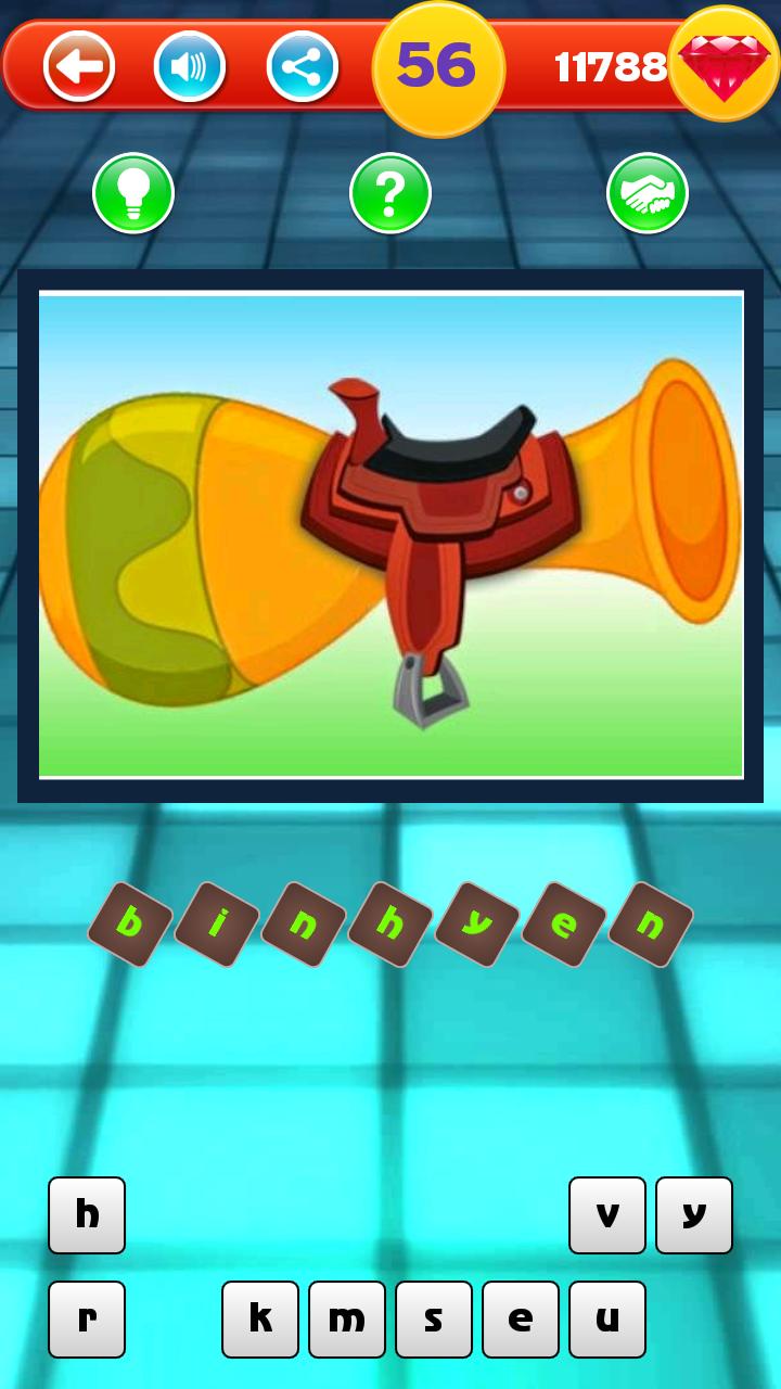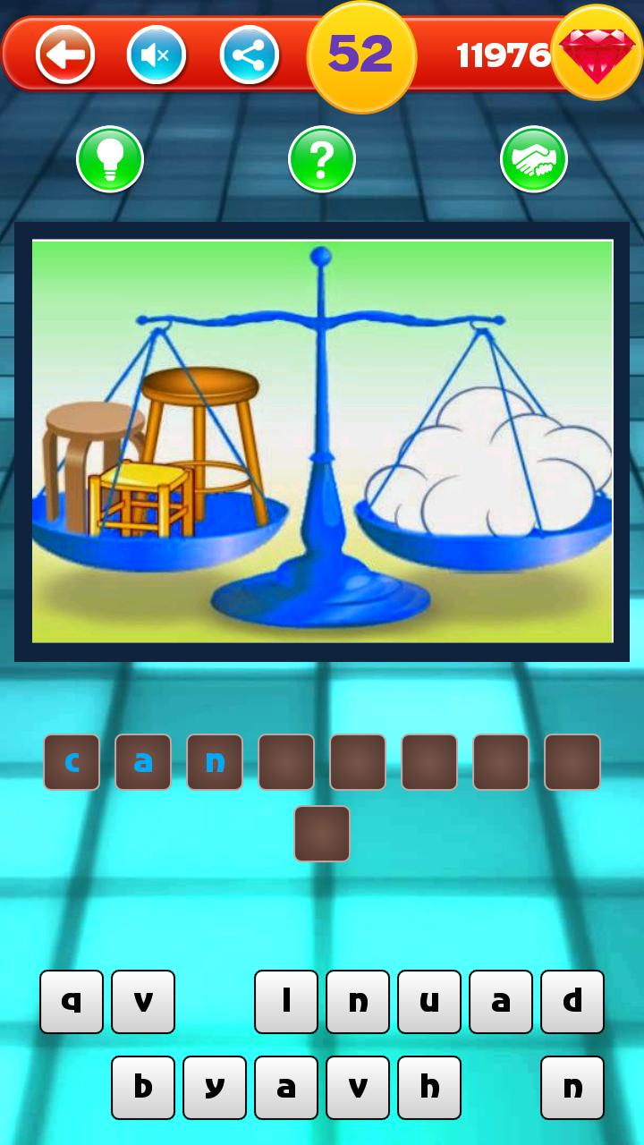 Ini adalah game gameshow terkenal di televisi mengejar kata -kata, layar game akan menampilkan gambar untuk Anda tebak, gunakan imajinasi Anda untuk menebak apa itu dan kemudian memberikan jawaban di bawah ini, jika Anda benar, Anda akan mendapatkan poin.