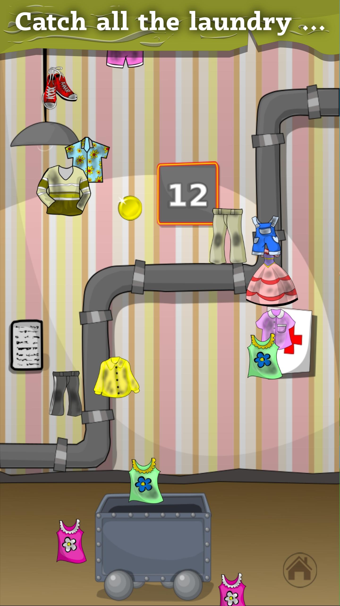 Pergi melalui labirin dan kumpulkan semua cucian.