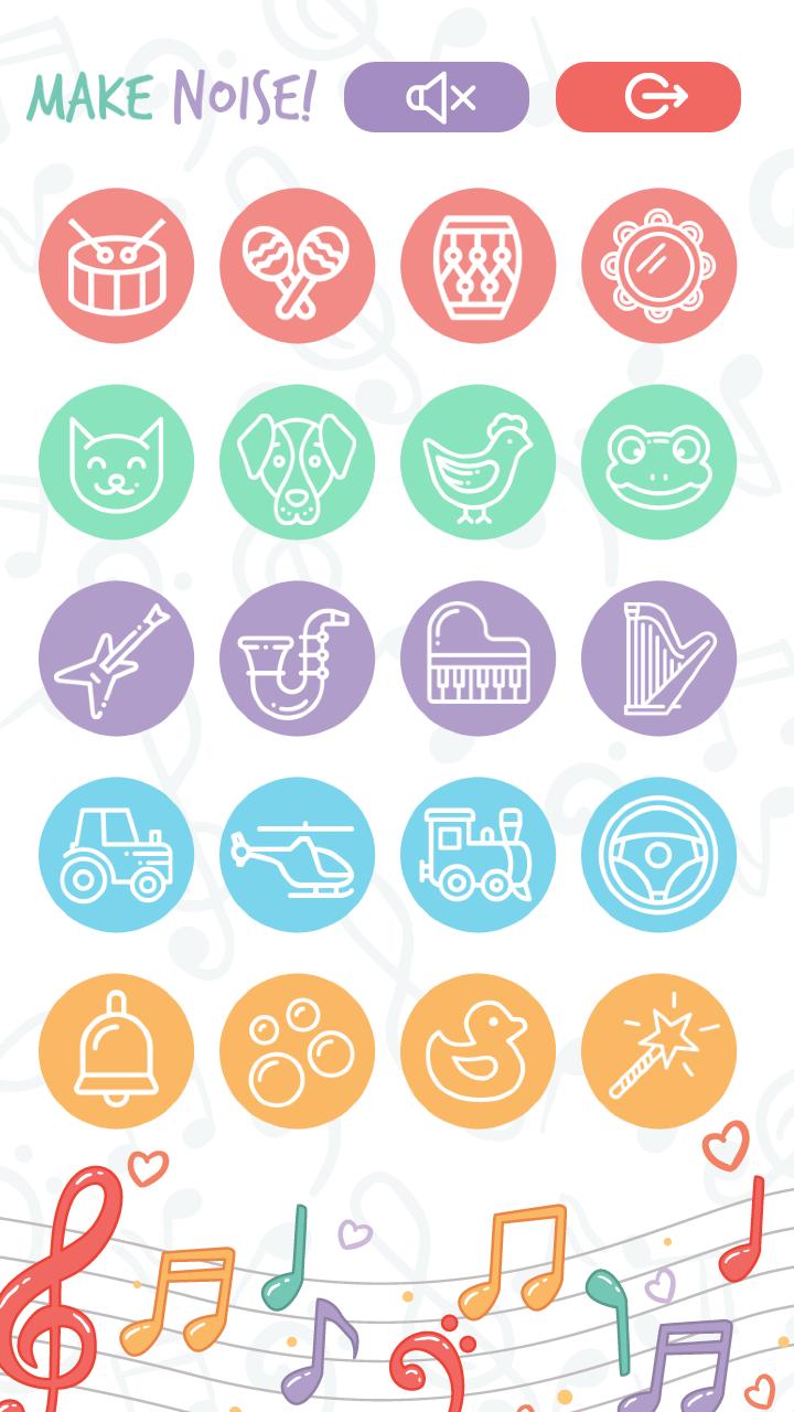 Aplikasi ini memungkinkan anak Anda untuk memainkan suara yang berbeda: hewan, transportasi, alam, alat musik musik. Tekan tombol - Dapatkan suara baru!
