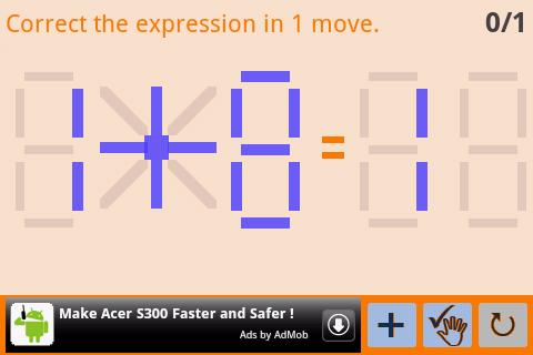 Anda diharuskan memindahkan satu atau lebih tongkat dan memperbaiki ekspresi. Jumlah gerakan tergantung pada level game.