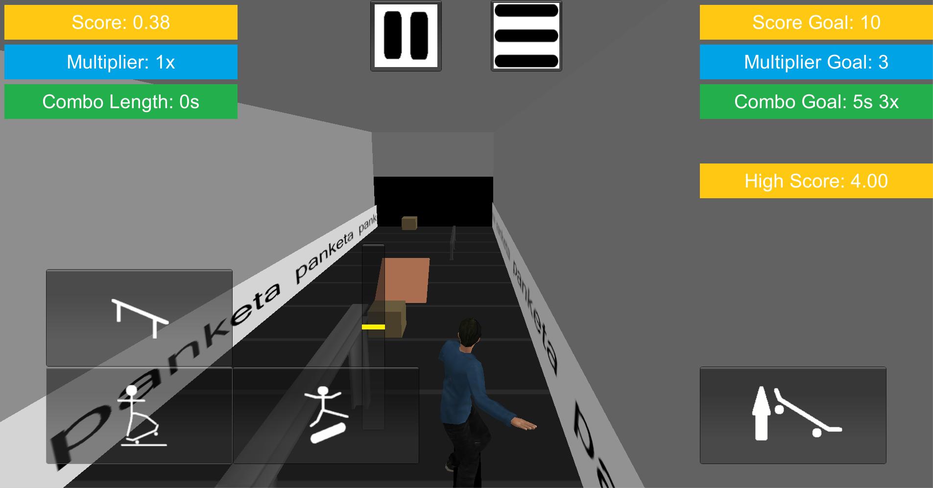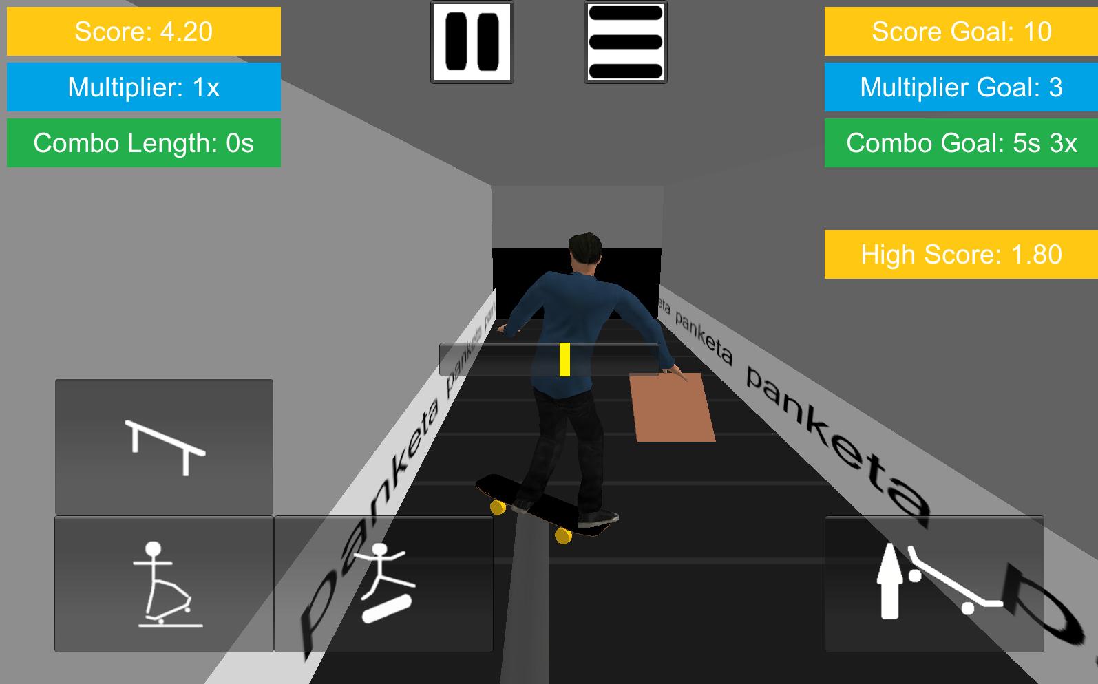 Skate pada sabuk konveyor yang dimuat dengan objek acak untuk melakukan trik. Jaga keseimbangan Anda saat atau menggiling di rel, melakukan kick flips, menghindari kotak, dan melakukan manual untuk membuat kombo panjang dan menghasilkan skor tinggi.