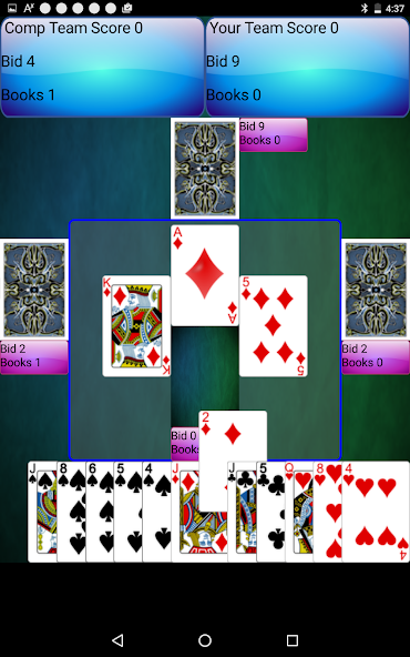 Spades - County Rules adalah variasi pada permainan kartu sekop di mana tidak ada poin di atas tawaran (tas), tirai, tawaran nil, dan buku dihitung berdasarkan satu banding satu. Ini juga merupakan permainan tim. Tim Anda melawan tim komputer. Saya akan menambahkan potong tenggorokan sebagai pilihan di lain waktu. Penekanannya adalah pada tawaran dengan aturan daerah, baik Anda mengajukan tawaran dan mendapatkan poin atau tidak. Tawaran minimum adalah 4 dan maksimum adalah 10. Anda tidak mendapatkan poin tambahan untuk membuat 10 tetapi itu akan menempatkan Anda di tempat yang jauh lebih baik karena lawan Anda akan ditetapkan. Tim pertama menjadi 25 kemenangan.
