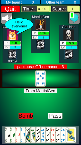 Sekarang Anda dapat bermain tichu online dengan teman -teman Anda atau siapa pun di seluruh dunia!