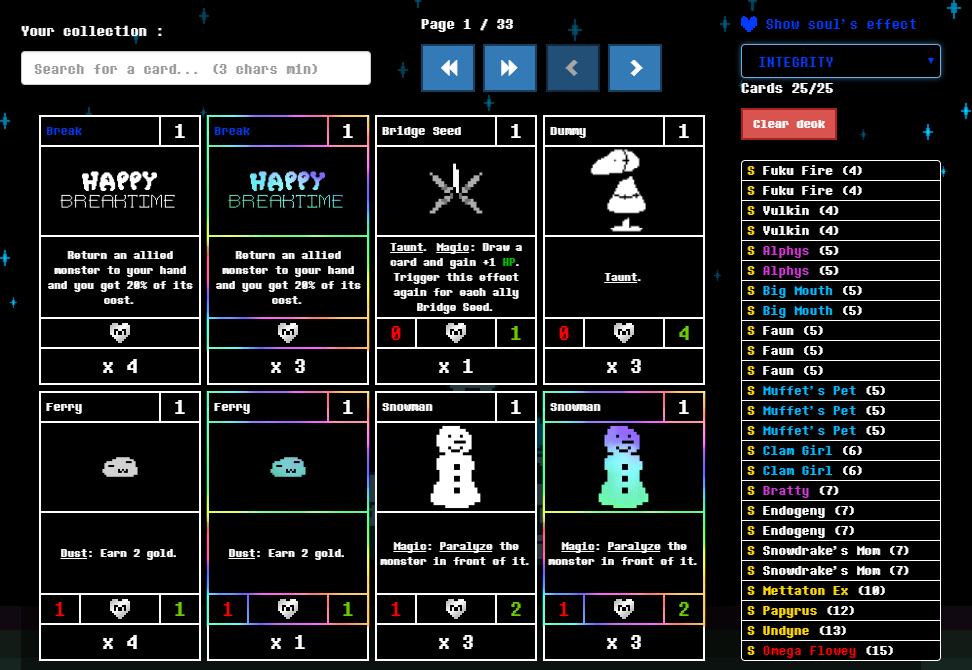 Anda dapat membangun berbagai deck dengan jiwa (kelas) yang berbeda: tekad, keadilan, ketekunan, integritas, kebaikan, kesabaran, keberanian. Setiap jiwa memiliki efeknya sendiri dan rangkaian mantra sendiri. Ada banyak strategi.