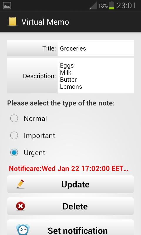 Virtual Memo必要なすべてのタスクを覚えておくのに役立つアプリケーションです。メモを追加でき、それらを終了した後、それらを更新または削除することができます。
