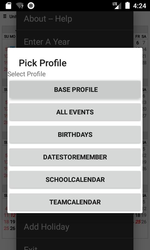 基本カレンダーは、画面上で通年の1年以上に加えて、電話またはタブレット用に表示されます