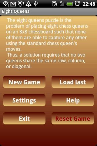 Eight Queensパズルは、8x8チェスボードに8つのチェスクイーンを配置する問題であり、標準的なチェスクイーンズの動きを使用して他の人をキャプチャすることはできません。