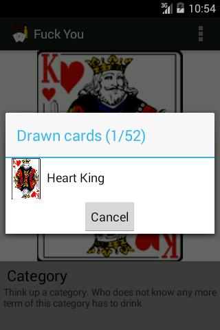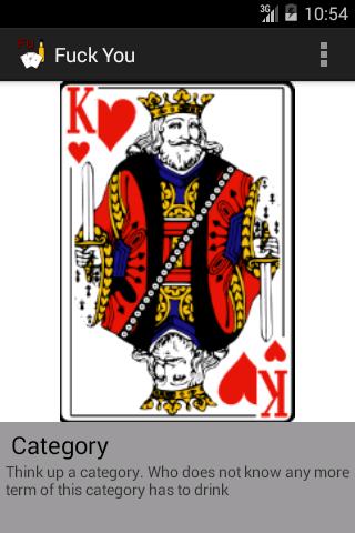 このアプリには、いくつかのカード飲料ゲームが含まれています。飲酒ゲーム「Fuck You」には2つの異なるバージョンが含まれています。